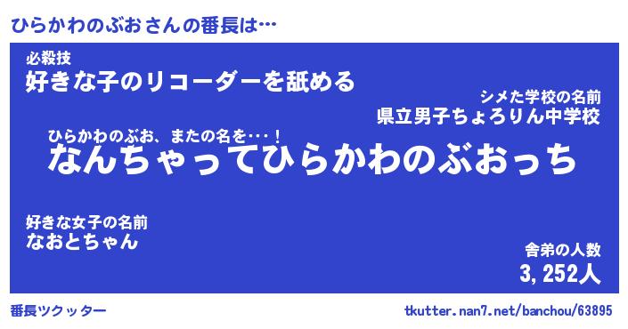 | 伝説のあだ名 | 『伝説のスナイパーひらかわのぶお』 |