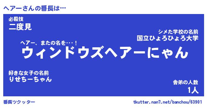 | 2回繰り返すあだ名 | 『ヘアヘア』『ヘヘアア』『いそいそ』 |