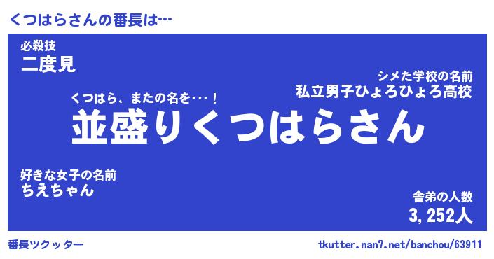 | 意味不明あだ名 | 『ペロリンくつはら』『永久保存くつはら』 |