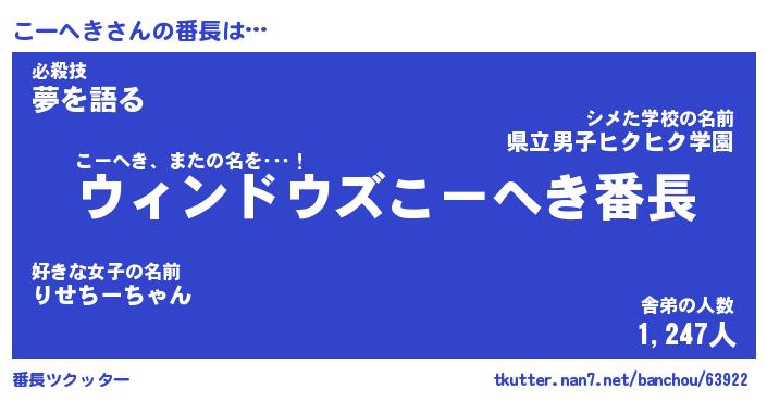 | 意味不明あだ名 | 『ペロリンこーへき』『永久保存こーへき』 |