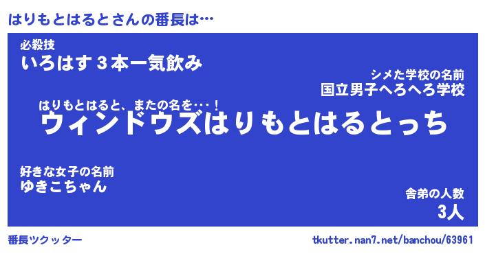 | ピコ太郎風あだ名 | 『ハコ三郎』『ピハ二郎』『ハリ次郎』 |