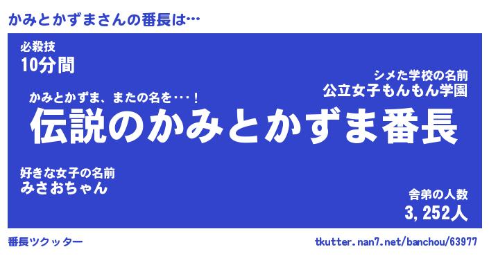 | 恥ずかしいあだ名 | 『プリティーかみとかずま』『かみっちょ』 |