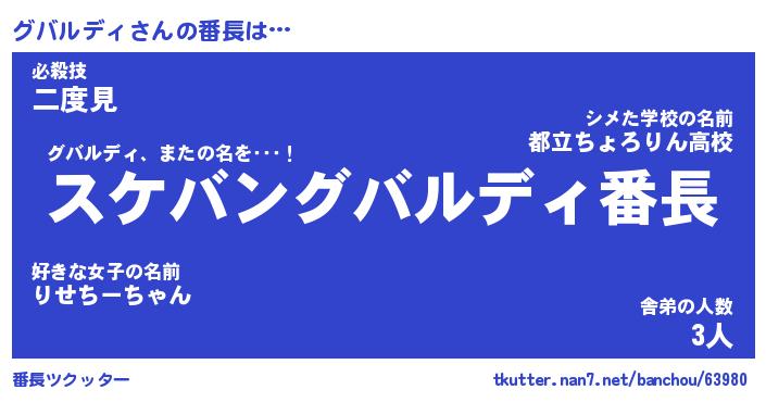 | ヒーロー風カッコイイあだ名 | 『スーパーグバルディ』『黄金騎士グバ』 |