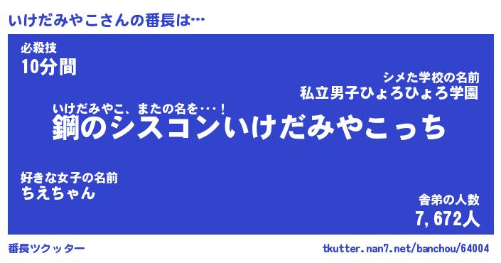 | ヒーロー風カッコイイあだ名 | 『スーパーイケダミヤコ』『暗黒騎士イケ』 |