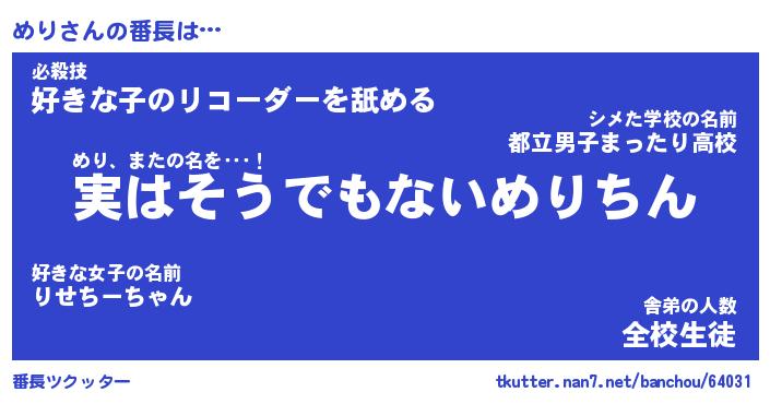 | ヘコむあだ名 | 『めりもー』『酢こんぶ』『めりお』 |