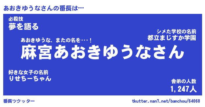 | ヒーロー風カッコイイあだ名 | 『スーパーアオキユウナ』『魔戒騎士アオ』 |