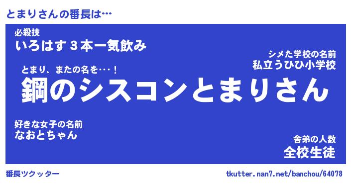 | 肩書あだ名 | 『とまり店長』『とまり総理大臣』 |