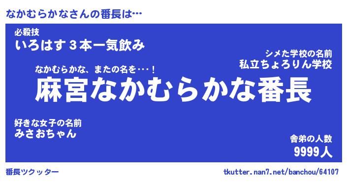 | 肩書あだ名 | 『なかむらかな店長』『なかむらかな教頭』 |