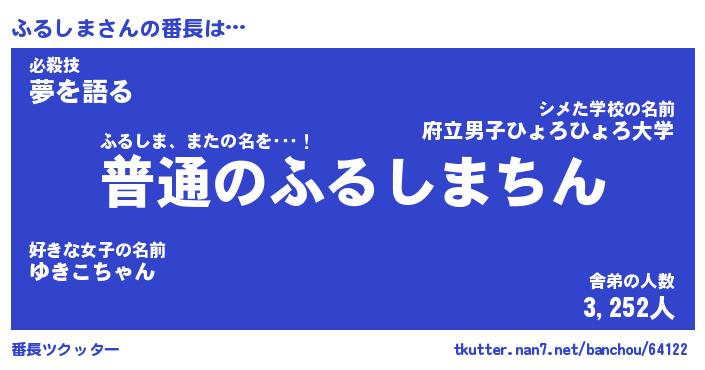 | 意味不明あだ名 | 『ペロリンふるしま』『永久保存ふるしま』 |