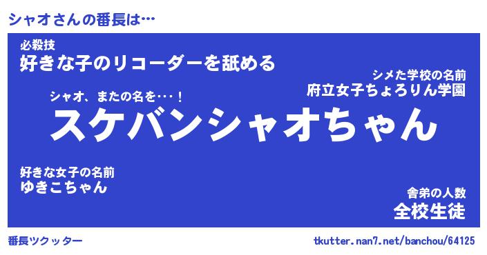 | ファンタジー風あだ名 | 『シャフェル』『エターナルシャオー』 |