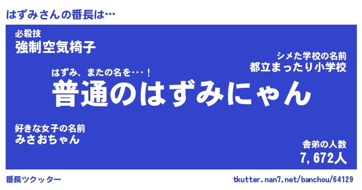 | 2回繰り返すあだ名 | 『はずはず』『ははずず』『いじいじ』 |