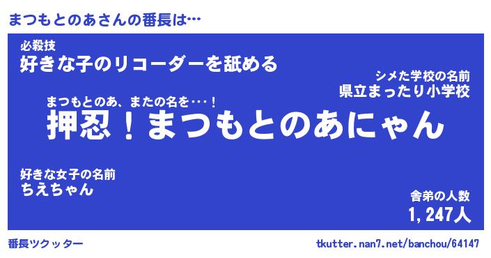 | 肩書あだ名 | 『まつもとのあ社長』『まつもとのあ班長』 |