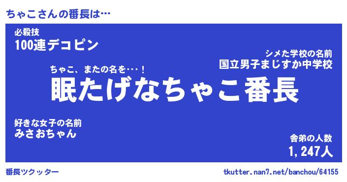 | 伝説のあだ名 | 『封印されしスナイパーちゃこ』 |