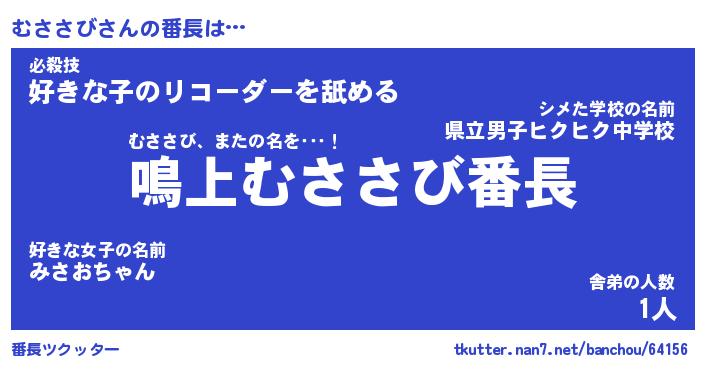 | ヘコむあだ名 | 『むさもー』『酢こんぶ』『むさ太郎』 |