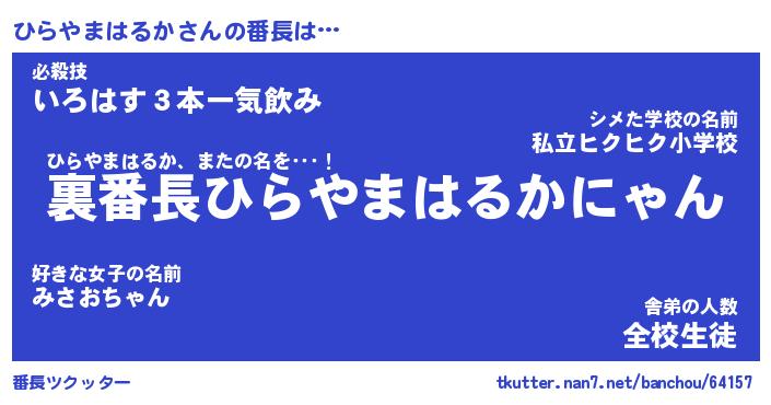 | ヒーロー風カッコイイあだ名 | 『スーパーヒラヤマハルカ』 |