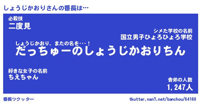 | 意味不明あだ名 | 『ペロリンしょうじかおり』 |