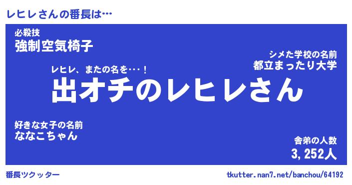 | ヘコむあだ名 | 『レヒもー』『つくし』『レヒ太郎』 |
