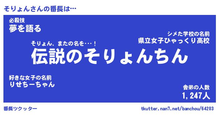 | 伝説のあだ名 | 『伝説のスナイパーそりょん』 |