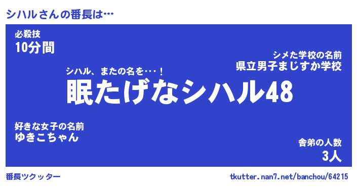 | ファンタジー風あだ名 | 『シハフェル』『エターナルシハルー』 |