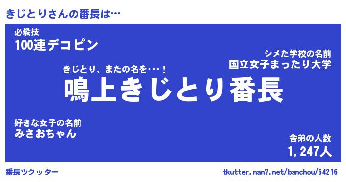 | ポケモン風あだ名 | 『キジチュウ』『キジトダネ』 |