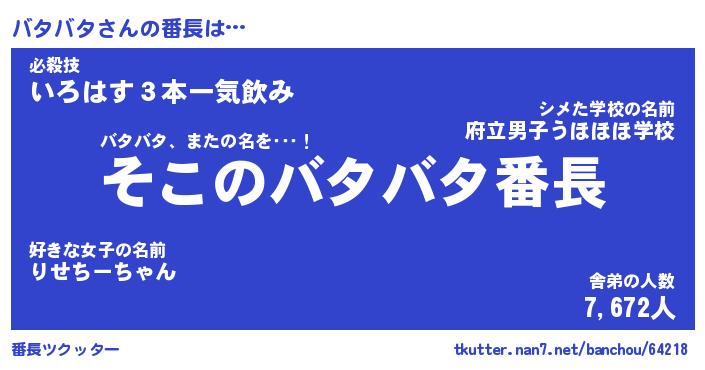 | ヒーロー風カッコイイあだ名 | 『スーパーバタバタ』『銀牙騎士バタ』 |