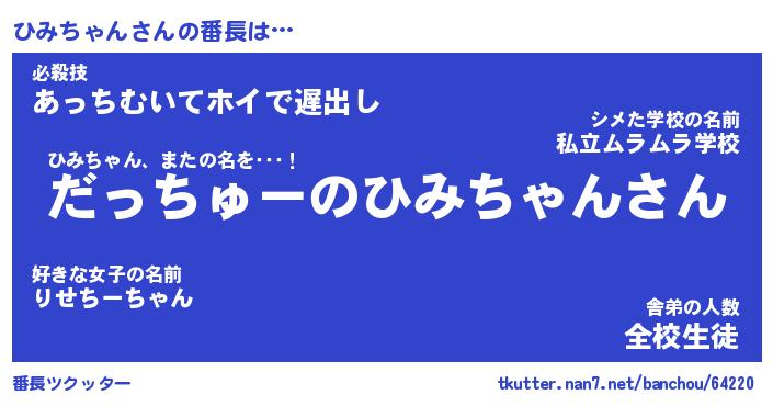 | 肩書あだ名 | 『ひみちゃん社長令嬢』『ひみちゃん班長』 |