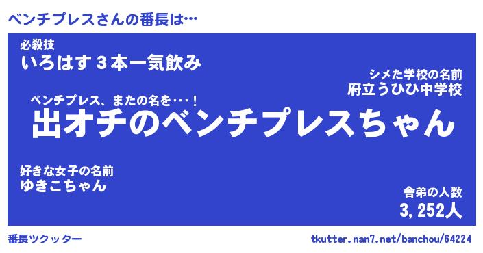| ヒーロー風カッコイイあだ名 | 『スーパーベンチプレス』『幻影騎士ベン』 |