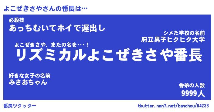 | ポケモン風あだ名 | 『ヨコチュウ』『ヨコゼダネ』 |