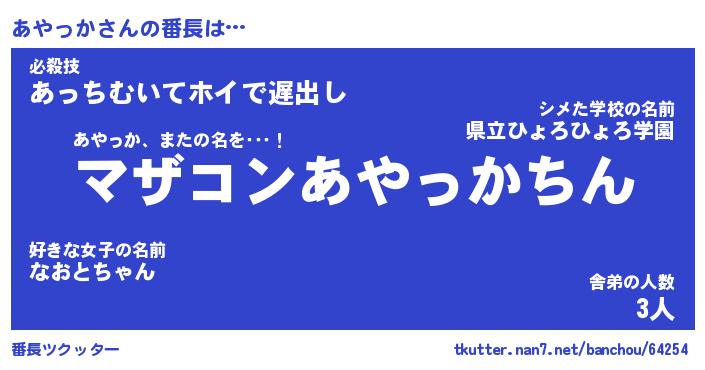 | 意味不明あだ名 | 『ペロリンあやっか』『永久保存あやっか』 |