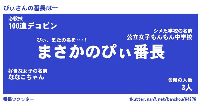 | ファンタジー風あだ名 | 『ピィフェル』『エターナルピィー』 |