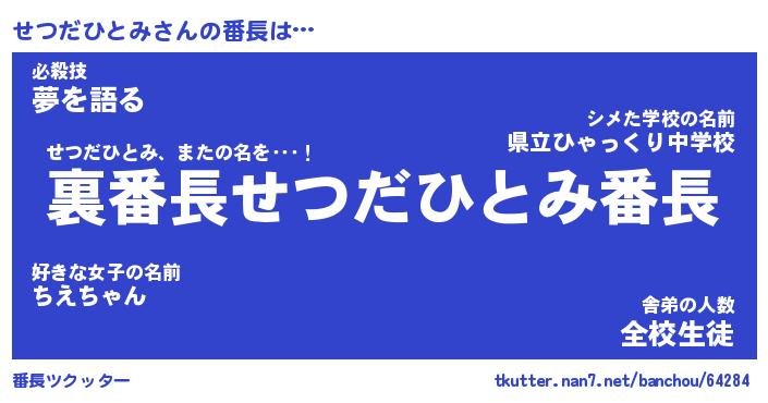 | ヒーロー風カッコイイあだ名 | 『スーパーセツダヒトミ』『暗黒騎士セツ』 |