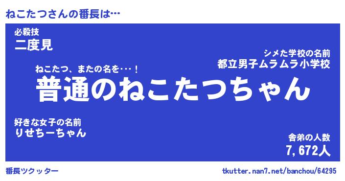 | 伝説のあだ名 | 『不死鳥のスナイパーねこたつ』 |