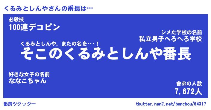 | ヒーロー風カッコイイあだ名 | 『スーパークルミトシンヤ』 |