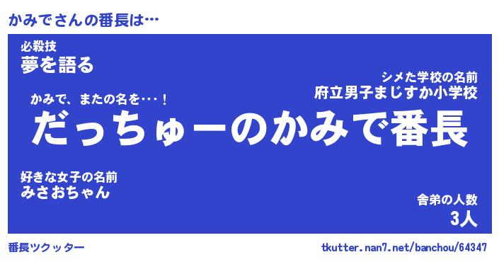 | 肩書あだ名 | 『かみで社長』『かみで総理大臣』 |