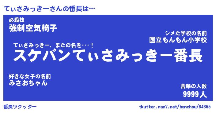| 欧米人風あだ名 | 『マイケルてぃさみっきー』 |