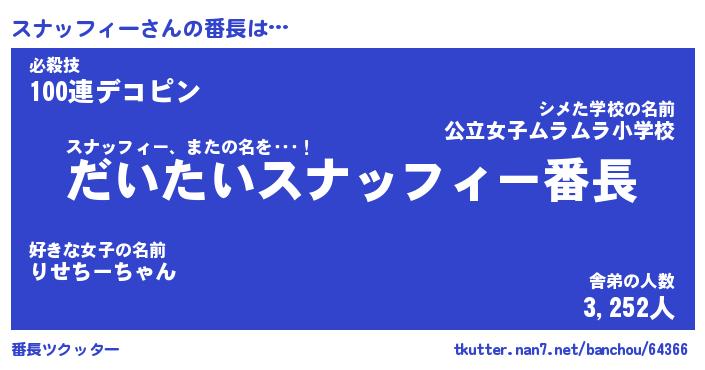 | ヒーロー風カッコイイあだ名 | 『スーパースナッフィー』『黄金騎士スナ』 |