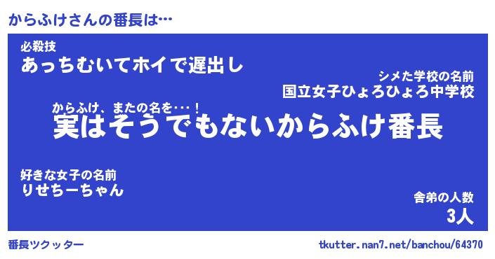 | 意味不明あだ名 | 『ペロリンからふけ』『永久保存からふけ』 |