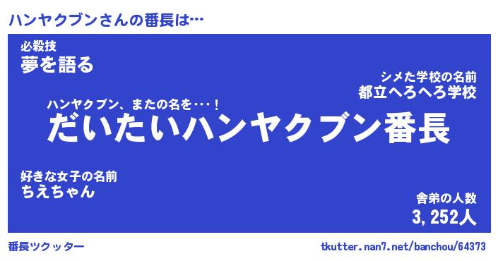 | ポケモン風あだ名 | 『ハンチュウ』『ハンヤダネ』 |