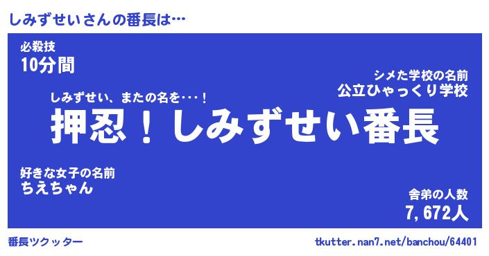 | 肩書あだ名 | 『しみずせい店長』『しみずせい国家主席』 |