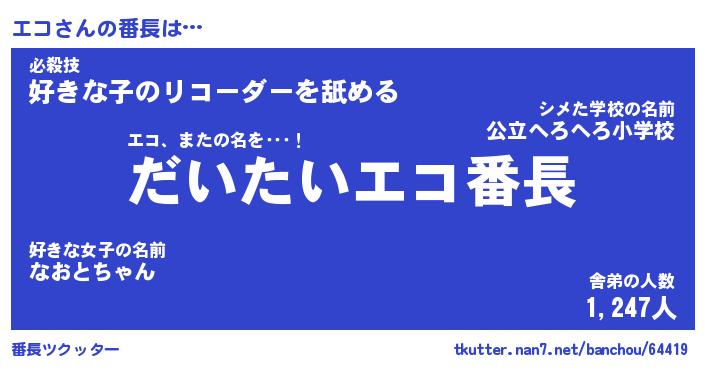 | 意味不明あだ名 | 『ペロリンエコ』『エコフォーエバー』 |