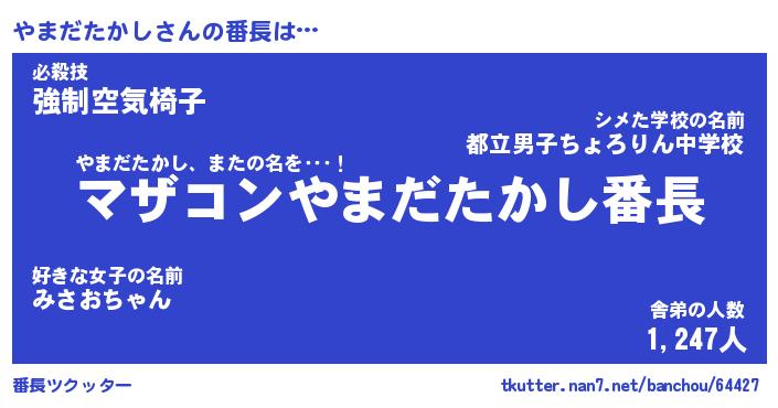 | 肩書あだ名 | 『やまだたかしCEO』『やまだたかし班長』 |