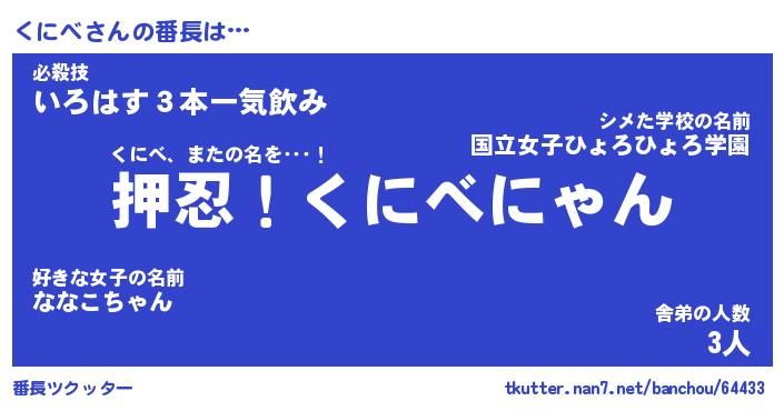 | ヒーロー風カッコイイあだ名 | 『スーパークニベ』『ウルトラくにべマン』 |