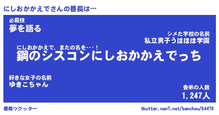 | ヘコむあだ名 | 『にしにゅー』『豆乳』『にしっ子』 |