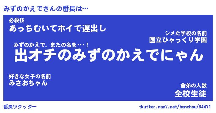 | ヘコむあだ名 | 『みずふぇ~』『つくし』『みずっぺ』 |