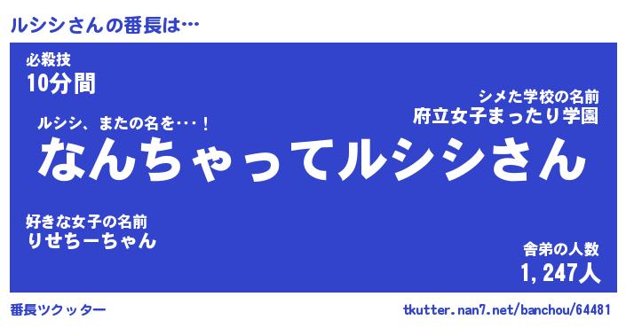 | 肩書あだ名 | 『ルシシ社長』『ルシシ総理大臣』 |
