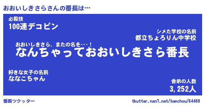 | 2回繰り返すあだ名 | 『おおおお』『おおおお』『ぎすぎす』 |