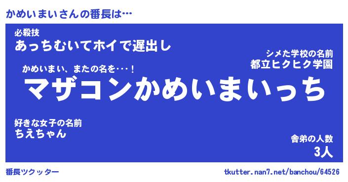 | 肩書あだ名 | 『かめいまい店長』『かめいまい総理大臣』 |