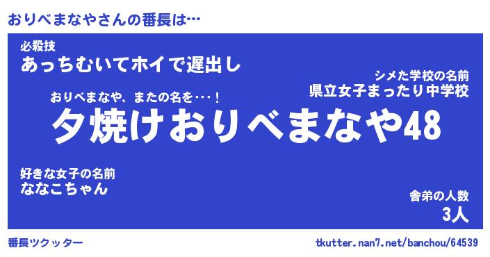 | 肩書あだ名 | 『おりべまなや御曹司』 |