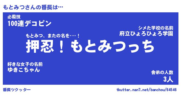 | 意味不明あだ名 | 『ペロリンもとみつ』『永久保存もとみつ』 |
