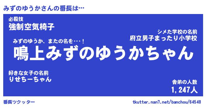 | 伝説のあだ名 | 『封印されしスナイパーみずのゆうか』 |